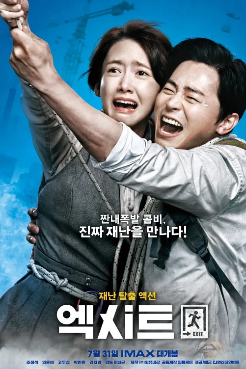 영화 엑시트의 장단점을 한 번 살펴보겠습니다. 먼저 장점입니다. 첫 번째는 정석에 가까운 완급 조절입니다. 모든 장르가 마찬가지겠지만, 이 재난 영화에서는 완급 조절이 꽤나 힘들 수 있습니다. 너무 사전 설명을 나열하면 지루한 영화가 돼버리고 너무 재난에 대피하는 장면에만 비중을 두면 관객들은 지쳐버리고 결말을 맺는 것조차 힘들어집니다. 하지만 엑시트를 연출한 이상근 감독은 정석에 가까운 스토리지 강약 조절로 관객들의 컨디션을 훌륭하게 컨트롤했습니다. 저도 보면서 굉장히 긴장을 하면서 볼 수 있었습니다. 초반 인물들의 설정과 오로지 대사와 행동만으로 성실하게 설명을 했습니다. 자신의 목숨을 바쳐 사람들을 위기로 몰고 간 테러범의 테러 동기는 중반부 뉴스의 보도를 빌려 설명을 하면서 관객들의 의문을 깔끔하게 해결해 영화의 텐션을 유지하고 있습니다. 강도 높은 액션 신들은 두 이동지점 이상 보여주지 않습니다. 그 사이에는 먼저 대피한 가족들의 서브스토리와 함께 조정석과 임윤가 보여주는 환상적인 케미의 환장하는 개그씬들이 있습니다. 개그씬 역시 주연들의 다음 행동 범위를 절대로 침범하지 않습니다. 감독은 어느 한 부분에 욕심을 부리지 않고 계산적으로 액션과 개그 파트를 나누어 관객들은 양쪽 모두에 강하게 몰입할 수 있었습니다. 두 번째는 현실성입니다. 이 영화는 현실을 기반으로 한 만큼 보이는 소품들이 모두 현실성을 나타내고 있습니다. 산악 동아리 출신이기 때문에 언제 어느 곳에서나 클라이밍 장비를 가지고 간다? 우연히 잡은 연회장의 점장이 클라이밍 마니아였다? 이런다면 정말 말이 안 되겠죠. 하지만 여기서도 감독은 영리하게 연출했습니다. 절대 우연히 발견한 비현실적인 도구 없이 우리 주변에 흔하게 볼 수 있는 도구만 사용되었습니다. 그리고 저는 용남과 의주가 활용하는 도구와 대피 방법들을 보면서 이 영화가 마치 재난 매뉴얼처럼 느껴졌습니다. 지하철역에 구비되어 있는 방독면부터 완강기의 로프 분필 그리고 아령과 케틀벨을 적재적소에 최대한 현실적인 부분을 고려해서 이용하고 있습니다. 물론 어느 정도 영화적 허용이 없는 건 아닙니다. 세 번째는 캐릭터입니다. 인물들의 말과 행동은 개연성에서 크게 벗어나는 부분이 없이 용남과 의주는 틈틈이 깔아놓은 신체능력과 장비활용능력에 대한 복선과 설정, 용남은 생각 없는 백수가 아니라 취업하기 위해 여기저기 지원하면서 스트레스를 받는 청년 그리고 의주는 현실 때문에 직장에서의 부당한 대우도 참고 책임감 때문에 위기 상황에서도 손님들은 먼저 탈출시키지만 정작 사실은 자신도 탈출하고 싶었던 직장인. 대피 중간중간 끼어있는 개그씬은 억지로 벌이는 슬랩스틱이나 덜 떨어진 행동이 아닌 철저하게 캐릭터가 처한 상황만이 녹아든 개그로 웃음을 유도할 뿐입니다. 주변 인물들도 마찬가지입니다. 어느 정도 극의 재미를 위해 과장된 면들은 있지만, 개연성이나 설정을 망가뜨릴 정도의 행동은 없습니다. 그리고 재난 영화에서 나오는 발암물질 같은 인물들도 딱히 없습니다. 후에 처리가 곤란해질 만한 테러범은 초반에 자살로 처리하였고, 의주에게 집적대는 밀런 구점장은 초반 구조헬리콥터에 탑승시키는 걸로 퇴장시킵니다. 정말 현명한 선택이었습니다. 자 이제 장점을 봤으니 이제는 단점을 보겠습니다. 첫 번째 단점은 CG를 비롯한 특수효과와 세트입니다. 사실 중반부를 넘어가면서는 좀 덜했지만, 초반부의 CG는 좀 아쉬웠습니다. 연기와 폭발하는 장면이 너무 붕 떠서 몰입을 방해하였고, 심지어 이 영화는 아이맥스 포맷의 영화입니다. 이 영화의 장르와 재난 원인을 생각하면 이건 정말 치명적인 문제입니다. 거기에 주무대인 빌딩숲 도시 역시 시트콤의 세트와 같이 건물의 외벽보다는 조명과 카메라가 둘러싼 실내의 모습이 연상돼 긴장감을 느끼기는 힘들었습니다. 중반부에 도시 전체를 숨 가쁘게 이동하면서는 좀 덜하다는 게 그나마 다행이었습니다. 두 번째 단점은 오글거리는 결말에서의 전개입니다. 물론 재난 영화에서 감동적인 마무리는 좋지만 최후반부 각지에 있는 사람들이 드론을 조정하는 장면에서 손이 오그라들었습니다. 그리고 비제이들이 카메오로 출연하는 장면은 정말 최악이었습니다. 슈기는 그나마 괜찮다 쳐도 윰댕이나 대도서관은 오히려 감동보다는 헛웃음이 나오는 장면이었습니다. 이렇게 영화의 장점과 단점을 살펴봤습니다. 영화 엑시트는 확실히 괜찮은 영화입니다. B급 코미디 영화 같은 광고를 보고 예상했던 이런 망작이 아니라 블랙 코미디 요소가 적절히 섞인 훌륭한 재난 액션 영화였습니다. 배우들의 연기는 훌륭했고요. 쓸데없는 디테일이나 설정들은 적절히 쳐냈으며 재난 영화의 클리셰들은 좋은 의미로 박살을 내버렸습니다. 덕분에 저는 스텝롤이 올라갈 때 만족할 수 있었습니다. 거기다 작중에 깔아놓은 청년실업에 대한 메시지들과 조카를 이용한 수미상관식 이야기 전개는 정말 교과서적으로 설치해 놔서 영화의 무게감을 적당선에서 유지시켜주고 있습니다. 여유로운 주말에 보기 좋은 영화